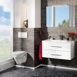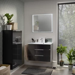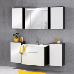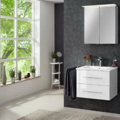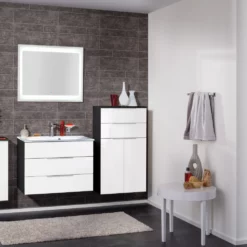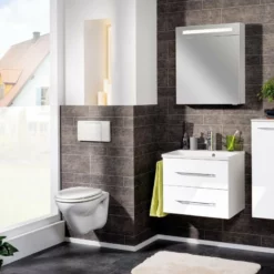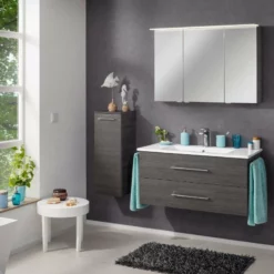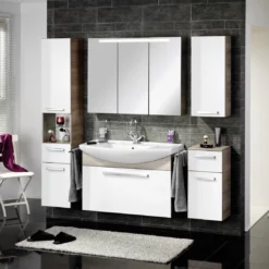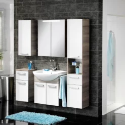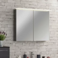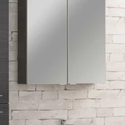 Fackelmann B.perfekt Spiegelschrank, Led-Box+Leuchte – Dark Oak | 80×69,5×23,5 Cm | 2 Türen