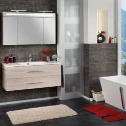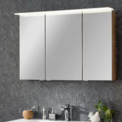 Fackelmann B.perfekt Spiegelschrank, Led-Box+Leuchte – Asteiche | 100×69,5×23,5 Cm | 3 Türen