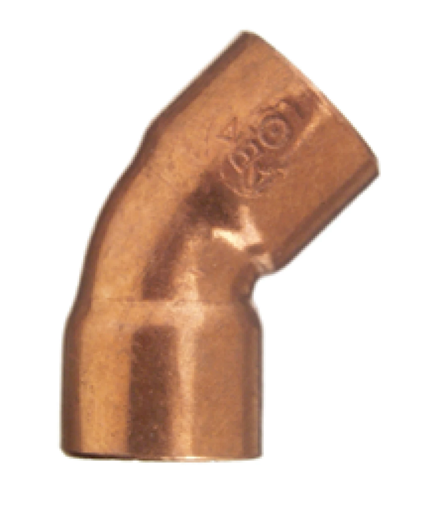 CU/Löt-Bogen – 2 Muffen | 45 Grad | Ø 18mm | 10 Stück