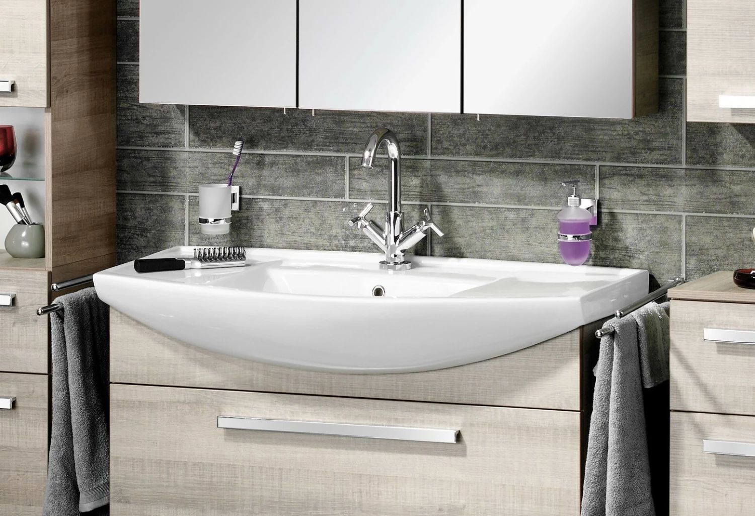 Keramikbecken A-VERO, weiß, nur mit Waschtischunterschrank verwendbar, BxHxT ca. 1020 x 185 x 500 mm (Stärke 50 mm)