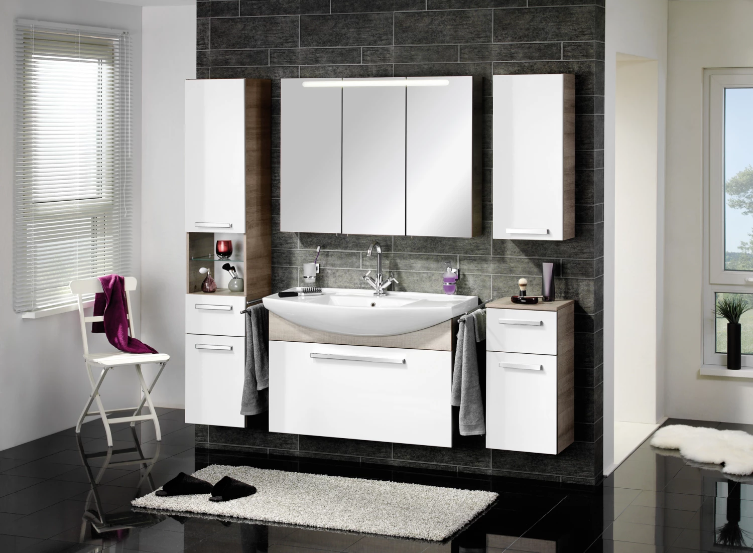FACKELMANN A-VERO Waschtischunterbau, 1 Schub – 98,4x64x35,3 cm | Eiche | Weiss