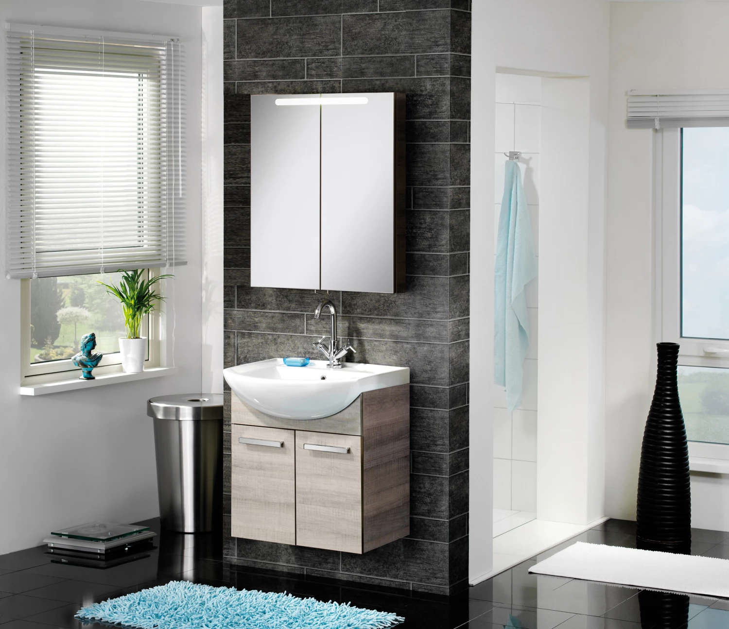 Fackelmann B.perfekt Spiegelschrank, Led-Box+Leuchte – Dark Oak | 60×69,5×23,5 Cm | 2 Türen