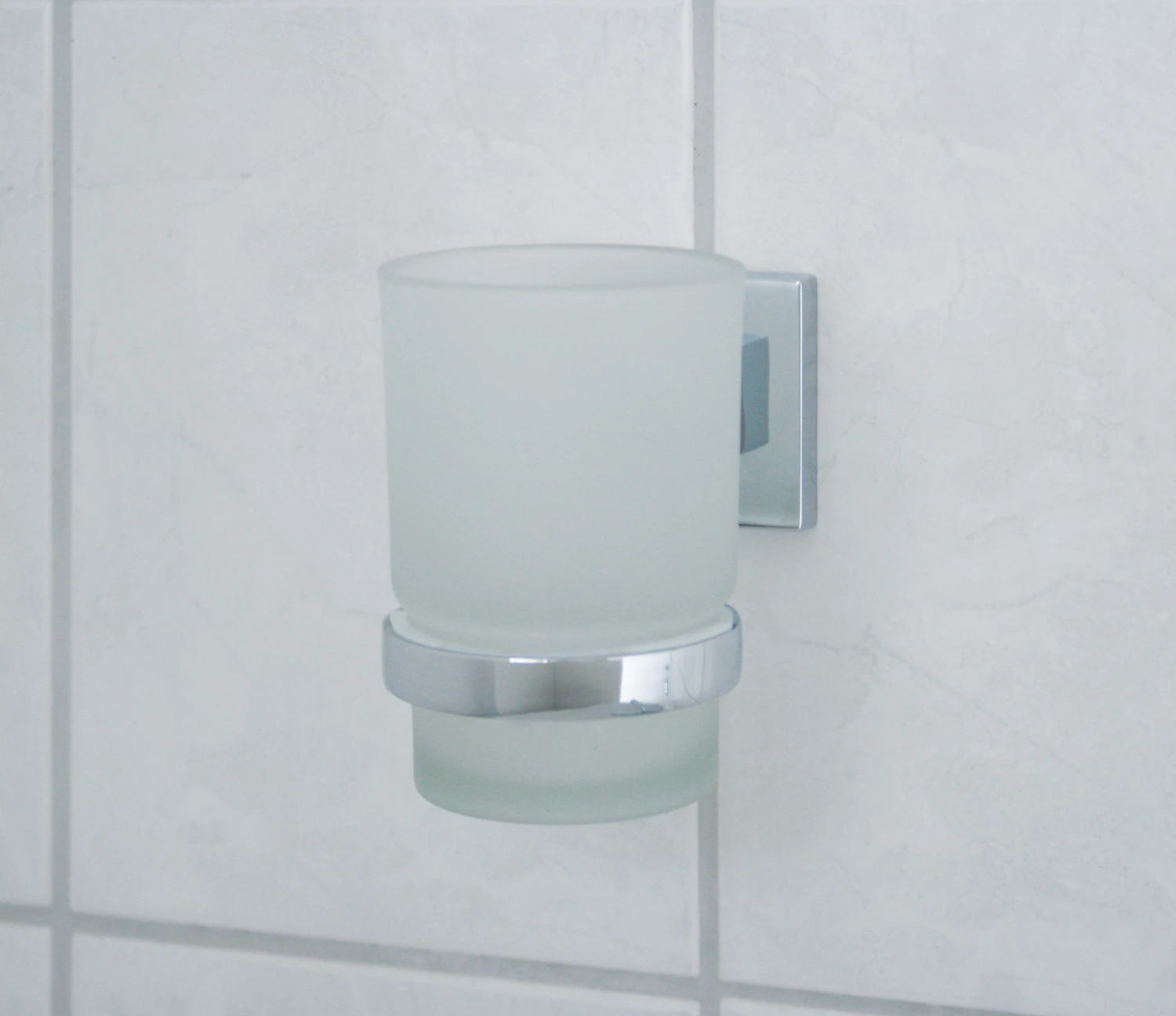 MARE Glas mit Halter, quadratisches Design, Oberfläche glänzend, verchromt, BxHxT ca. 70 x 100 x 110 mm