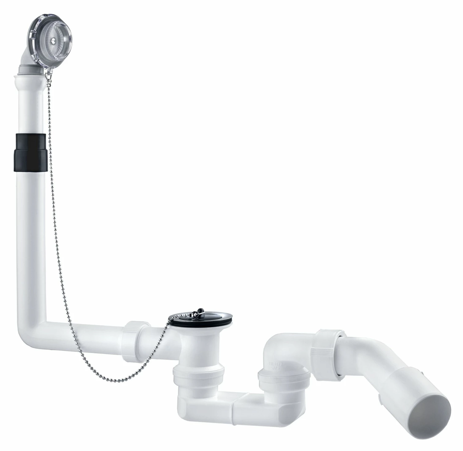 Wannen-Ablaufgarnitur mit Überlauf, Kette, Stopfen und Geruchverschluß. Ideal für Bade- und tiefe Brausewannen.