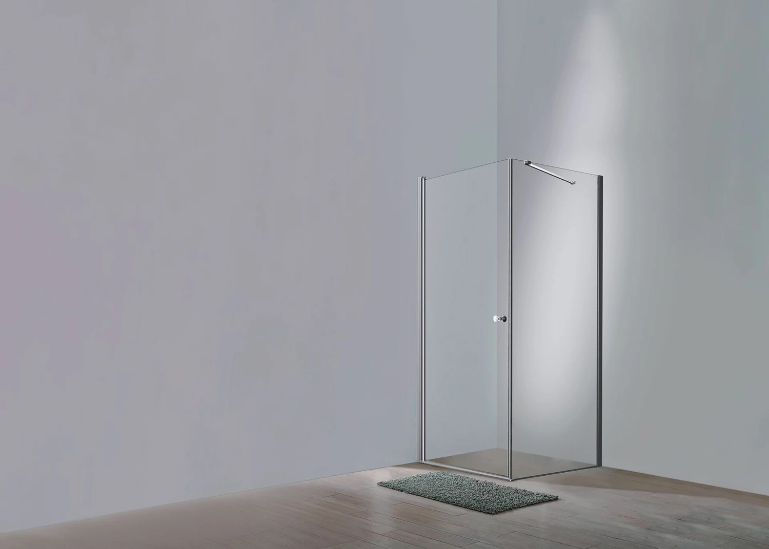 Gehärtetes Sicherheitsklarglas bietet maximale Stabilität und Sicherheit. Die einseitige pflegeleichte Oberfläche erleichtert die Reinigung und Pflege. Zudem sorgen das silberfarbene Aluminiumprofil und der Aluminiumstabilisator für eine elegante Optik und zusätzliche Stabilität. Die Seitenwand verfügt über einen 20 mm Ausgleich am Glas für eine einfache Installation. Perfekt geeignet für Ecken und passt ideal zu Ihrem Badezimmer.