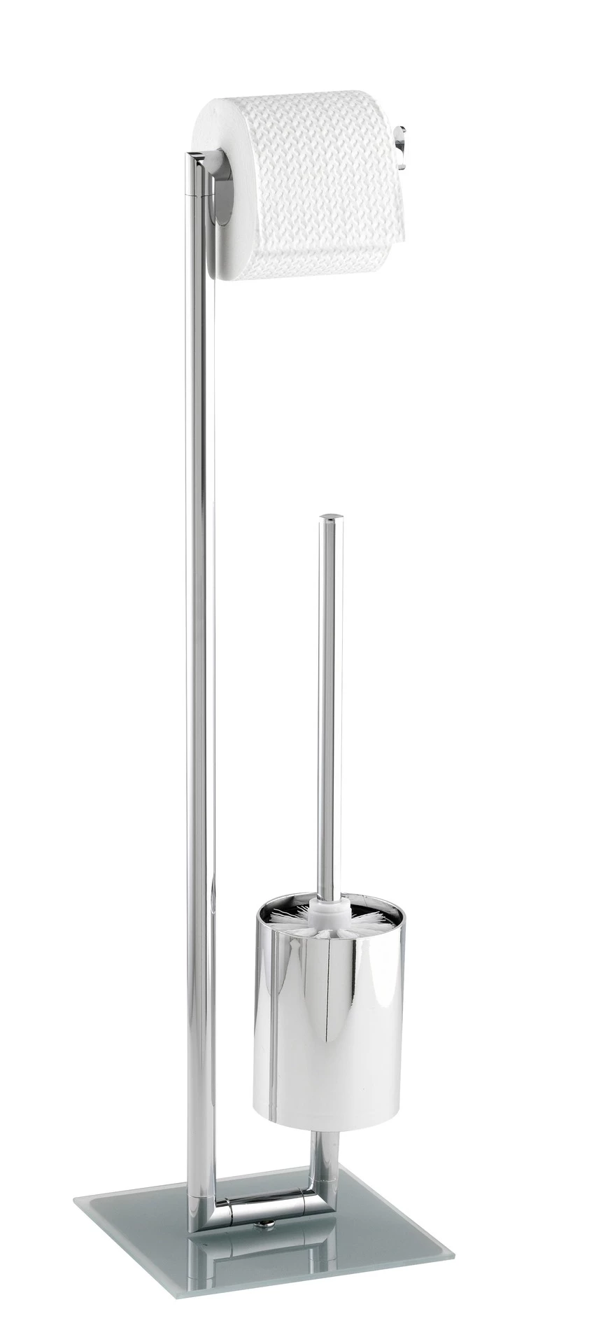 Die Kombination aus Toilettenpapier-Rollenhalter und offenem WC-Bürstenhalter im stilvollen, kantigen Design hält das Papier und die Bürste stets an gewünschter Stelle griffbereit.